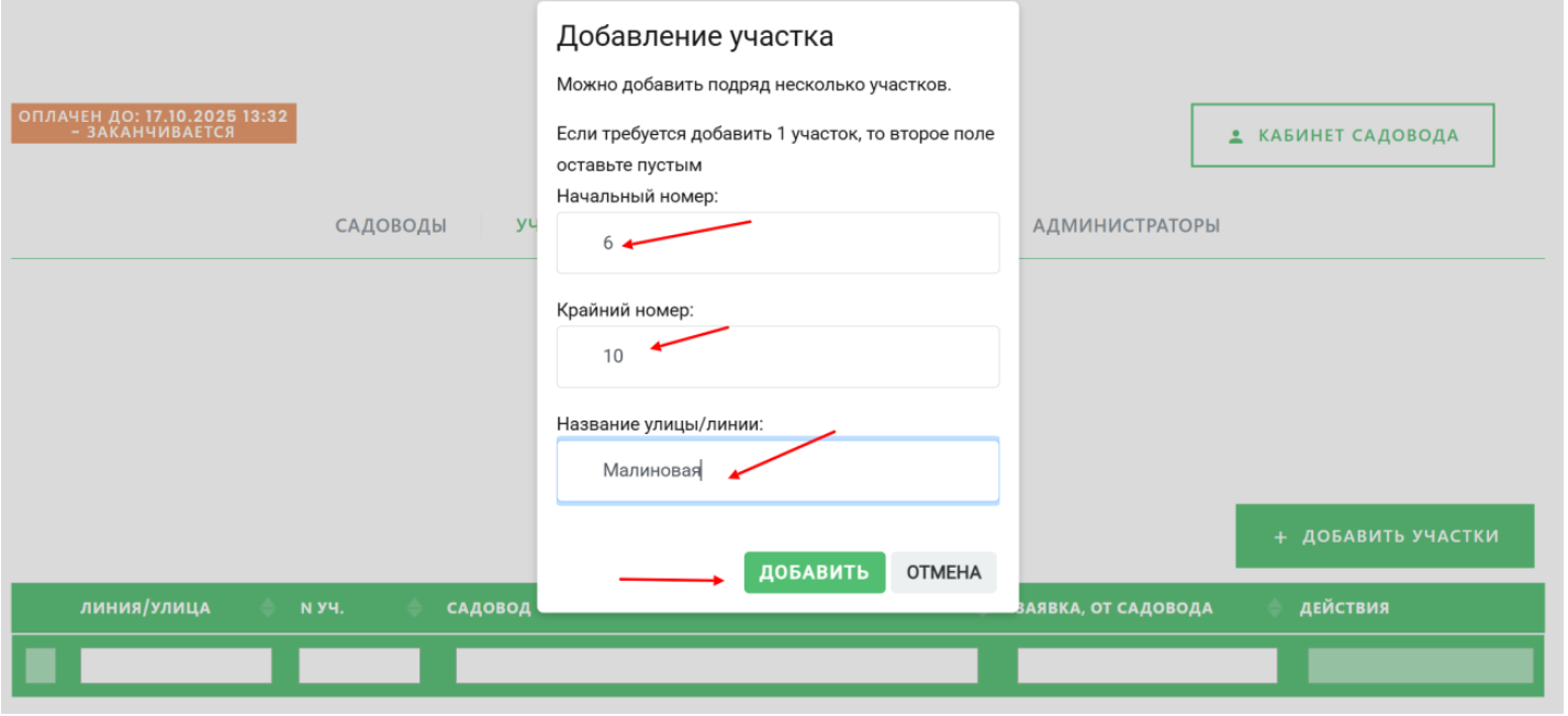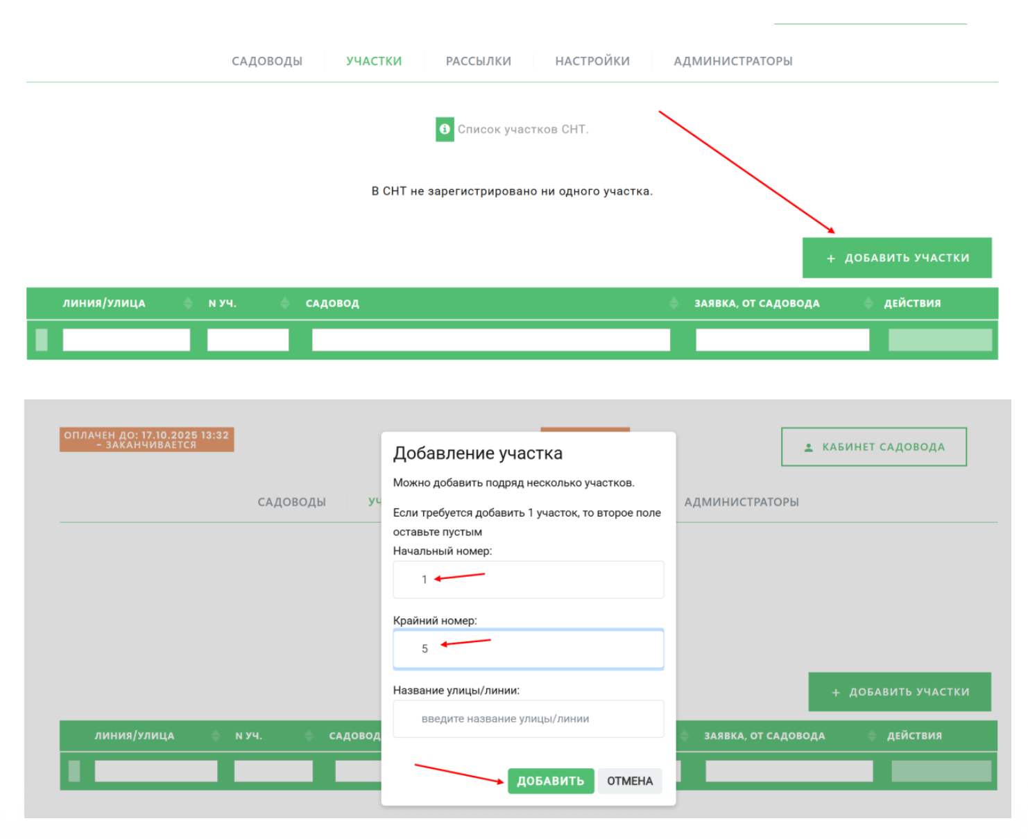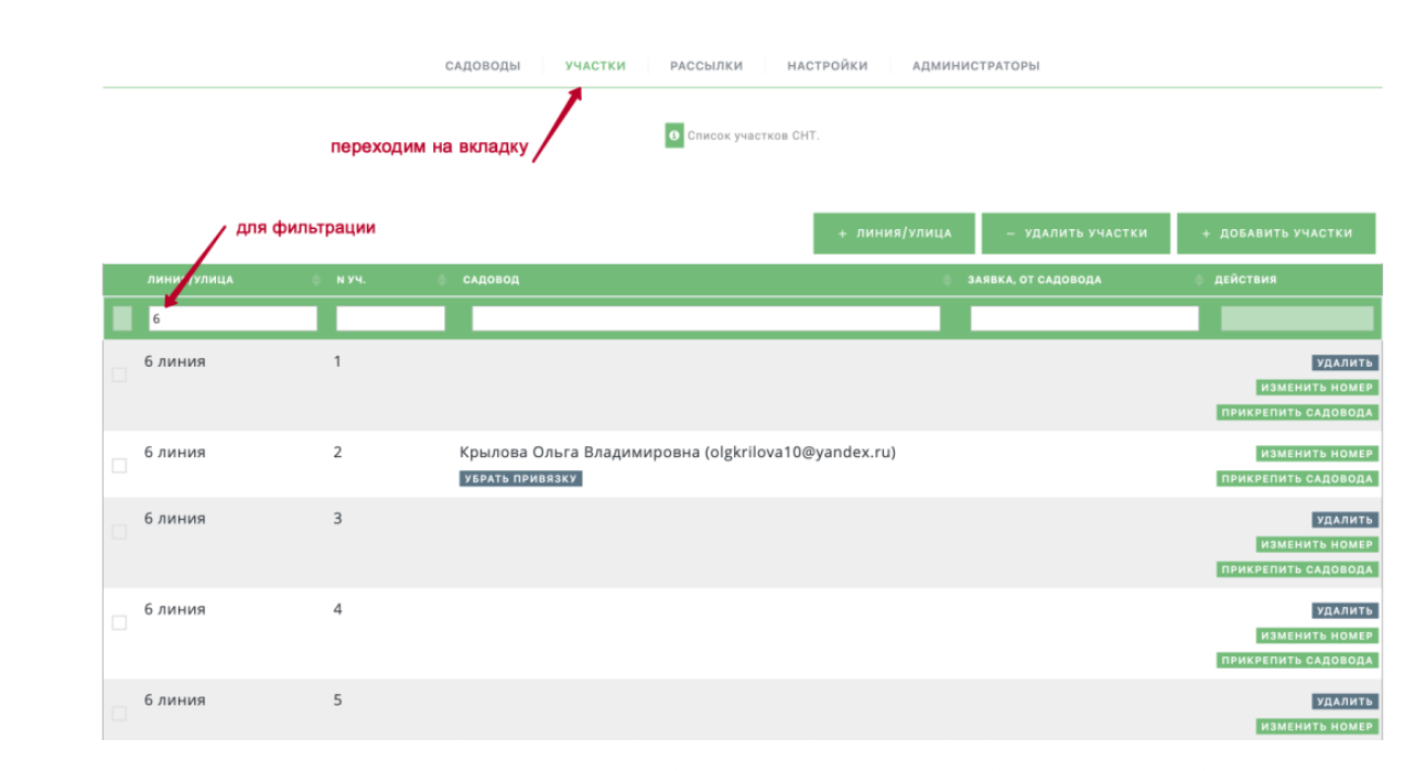 7. Далее необходимо подтвердить садоводов в разделе участки.