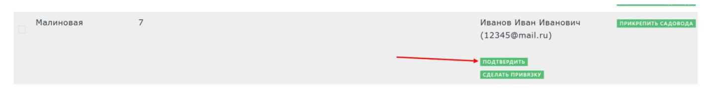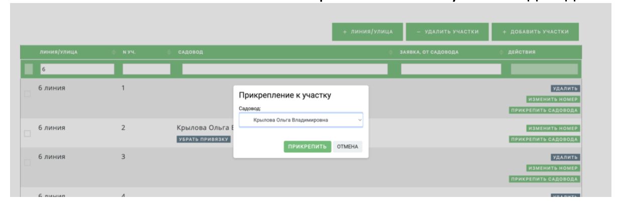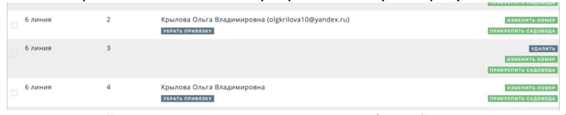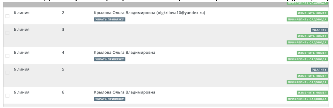 3. В строке нужного участка справа есть кнопки действий. Нас интересует кнопка «Прикрепить садовода»